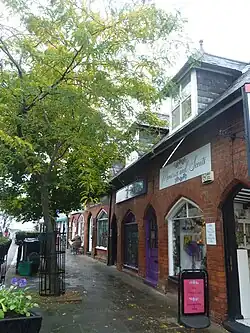 Nos. 20, 21, 22 and 23, collectively form a 19th-century four-building terrace, located to the rear of the Wynnstay Arms Hotel, on Charles Street, of which all are now shops with accommodation on their upper floors. The terrace is an adaptation of an earlier, possibly 17th-century, timber-framed building. The building's front is made of brick dating to the 17th century,[1] while its internal cross walls (and possibly the structure of its roof) have surviving timber framing. It has chamfered arches of brick serving as its doorways and shop windows, as well as a similarly arched central entrance. Its roof is steeply pitched slate. No. 20 to 23 are a notable surviving timber-framed structure in Wrexham, as well as known for its late 19th century shop design.[2][3][4][5]