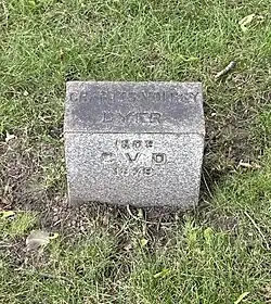 Charles V. Dyer died at his daughter's home in Lake View, Illinois on April 24, 1878.[1] He was buried at Oak Woods Cemetery in Chicago.