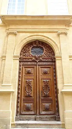 In 1635 and in 1642, he purchased two townhouses and converted them into the Hôtel Boyer de Fonscolombe, hôtel particulier located at 21 Rue Gaston de Saporta in Aix-en-Provence.[4] Later, he also resided at the Hôtel de Grimaldi-Régusse, another hôtel particulier located at 26, rue de l'Opéra in Aix, built for him in 1680 and listed as a monument historique since 1973.[1][5] He also resided in another hôtel particulier on the rue de la Tasse (now known as the rue Abeille) in La Ciotat, where he retired and wrote his memoir.[1]