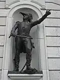 Statues of de Salaberry at Quebec's Parliament Building in Quebec City (left), at Valiants Memorial in Ottawa, and in Chambly, Quebec.