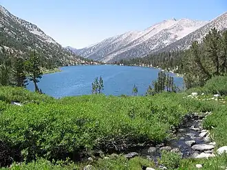 Charlotte Lake (also known as Charlotta Lake, or Rhoda Lake) is a lake in the Sierra Nevada, located in Kings Canyon National Park, eastern Fresno County, California. The lake is located on the John Muir Trail, at an elevation of 10,544 feet (3,214 m).