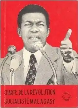 The Charter of the Malagasy Socialist Revolution (French: Charte de la Révolution Socialiste Malagasy) was the guiding document of the Democratic Republic of Madagascar, established by the "Red Admiral" Didier Ratsiraka, President of Madagascar and head of the Supreme Revolutionary Council from 1975 to 1993. The Charter was commonly known as the Red Book (Malagasy: Boky Mena) or the Little Red Book[1] due to the colour of the standard issue's cover[2] (and in possible reference to the Quotations from Chairman Mao Tse-tung, known popularly as Mao's Little Red Book).
