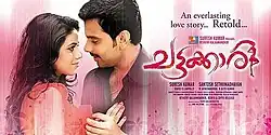 Chattakaari (English: The Anglo Indian Girl) is a 2012 Indian Malayalam-language romantic drama film written by Thoppil Bhasi based on Pamman's famous novel of the same name and directed by Santosh Sethumadhavan. It is the remake of the 1974 film of the same name, directed by K. S. Sethumadhavan, the father of Santhosh.[2] The film was produced by G. Suresh Kumar under the banner of Revathy Kalamandhir. It stars Shamna Kasim in the title roles.