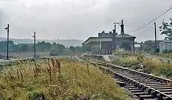 Passenger services were withdrawn in June 1963, though the closure of the service was not directly due to the Beeching Axe (withdrawal had already been proposed prior to the publication of his report in March of that year). Local sand traffic from nearby quarries continued and a new road-rail loading dock replaced the goods shed in the late 1960s.[1] Approximately 1,200 tons per day was being moved by this time but in the 1970s the amount of traffic reduced and on 6 March 1978 public freight working was withdrawn. A small amount of traffic for railway civil engineering use continued until November 3, 1984.[2]