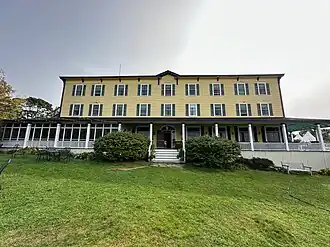 The Chebeague Island Inn is located on Chebeague Island, Maine, United States. Situated in 2.5 acres (0.0039 sq mi), on South Road, near the northern tip of the island, the inn overlooks part of Casco Bay. Just beyond the western edge of the inn's property, Stone Wharf Landing is where the Chebeague Island Ferry, which runs to and from Cousins Island, berths on the island.[1] The inn also overlooks a few holes of the island's nine-hole golf course.