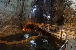 The Geopark provides a habitat for the following animals: 76 species of invertebrates, 4 species of fish, including 2 endemics,[13] 9 species of amphibians, 23 species of reptiles, among them there are 9 endemic species, 18 species of mammals. Besides these, 149 bird species find permanent or temporary refuge in the area. A large number of endemic butterflies, including a number of rare species, live in the alpine plains, especially in the alpine grasslands of the Geopark.[14] These species are closely connected to the geological features of the Geopark, as they provide special habitats. For example, one of the most important winter bat colonies in Europe with 18,000 individuals flourishes in the Geosite “Cave of the lakes“.[15]