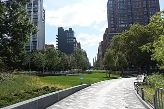 - ^ a b Donohue, Pete (October 12, 2000). "Green park sprouts on W. Side: Chelsea's portal to waterfront". New York Daily News. Newspapers.com. Archived from the original on August 30, 2023. Retrieved November 25, 2018.