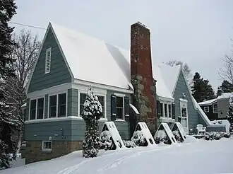 Chester Valentine House, also known as Strathmore Cottage, is a historic Strathmore model Sears kit house located at Saranac Lake, Franklin County, New York. It was built in 1932, and is a one-story, L-shaped plan dwelling in the Tudor Revival style. It features a gabled entrance, diamond-pane casement windows, and a prominent brick and stone chimney.[2]
