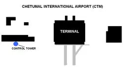 Chetumal International Airport (Spanish: Aeropuerto Internacional de Chetumal) (IATA: CTM, ICAO: MMCM) is an international airport located in Chetumal, Quintana Roo, Mexico, near the Belize–Mexico border. It serves domestic flights for Chetumal and the southern Quintana Roo region, while also supporting various executive and general aviation activities, and hosting Mexican Navy facilities. Since 2023, the airport has been operated by Grupo Olmeca-Maya-Mexica (GAFSACOMM), a holding company owned by the Mexican military. In terms of traffic, the airport handled 335,088 passengers in 2023, increasing to 433,527 in 2024.[1]