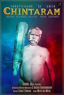 Chhattisgarh ke Bheem Chintaram (transl.Chhattisgarh’s Bheem Chintaram) is an Indian documentary film directed by S Anshu Dhurandhar.[1] It is based on the life of Indian strongman Chintaram Tikariha.[2][3] It is the first Chhattisgarhi documentary to contain interviews of over 250 people.[4] The film features first-hand accounts by locals, Tikariha's family and interviews from public figures including chief minister of Chhattisgarh Bhupesh Baghel, cabinet minister Tank Ram Verma and member of parliament Vijay Baghel.[5] The documentary was launched at a public event at Budgahan, Baloda Bazar on 6 January 2025. In February the film was screened at Raipur Art Literature and Film Festival 2025.[6]