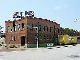 The freight house was placed on the National Register of Historic Places due to its association with the commercial development of Davenport, Iowa. After being renovated in the 1990s, The Freight House has seen a variety of uses, such as a comedy club, sports bar, piano bar, and restaurant. Currently, the freight house is home to several small businesses featuring locally grown items, such as a deli, a grocery hub, and a tap room for a local brewery.[3]
