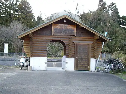 The station, which is unstaffed, consists of a side platform serving a single track. Across the track can be seen another, disused side platform as well as the track bed of a second track which has since been removed. A siding branches off the track and ends behind the platform and is used by track maintenance equipment. A small station building built in a loghouse style serves as a waiting room. A separate weather shelter is provided on the platform itself.[3][2]
