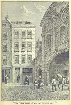Child took over most of the assets of Coggs & Dann, a goldsmith banker "at the sign of the Kings Head in the Strand, over against St. Clement Danes Church",[5] after the bank became insolvent in 1710 due to a massive fraud orchestrated by gentleman fraudster Thomas Brerewood, which became known as the Pitkin Affair.[6]