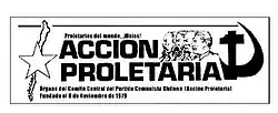 Chilean Communist Party (Proletarian Action) (Spanish: Partido Comunista Chileno (Acción Proletaria), PC(AP)) is an anti-revisionist Marxist–Leninist communist party in Chile, founded in 1979 and originating from the pro-Albanian tradition of the Revolutionary Communist Party.[2] It has presented independent candidates on legislative elections. The General Secretary of PC(AP) is Eduardo Artés.
