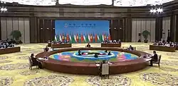 The China–Central Asia Summit (Chinese: 中国—中亚峰会; Russian: Саммит «Китай – Центральная Азия») is a diplomatic summit held by the leaders of China, Kazakhstan, Kyrgyzstan, Tajikistan, Turkmenistan, and Uzbekistan. The first China–Central Asia Summit was held at the Xi'an International Conference Center in Xi'an, Shaanxi, from May 18 to 19, 2023.[1][2][3][4] Xi Jinping, General Secretary of the Chinese Communist Party, presided over the summit, and the heads of state of the five Central Asian countries attended the summit.[5][6]