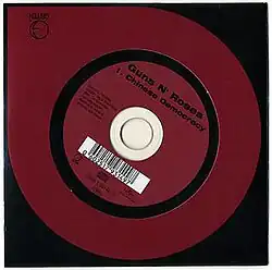 "Chinese Democracy" is a song by the American rock band Guns N' Roses, and the title track from their sixth studio album. It was released as a radio single on October 22, 2008[1] and was released on the iTunes Store on November 9, 2008. It was primarily written by Axl Rose and Josh Freese.[2] It was the band's first single of original material since "Estranged" was released in 1994 as the final single off the 1991 album Use Your Illusion II.