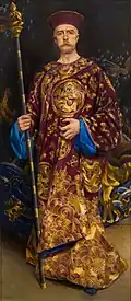 In the 16th century, Europe imported Chinese brocades to make the vestments for priests in Roman Catholic cathedrals.[10]: 618 According to British records dating to the late-19th century, gold foil was the ordinary form of precious metal which was used in embroidery and was a Chinese invention wherein Chinese people invented the process of laying a thin gold leaf on paper before rolling it around a silk thread.[11] Chinese gold-thread technology was later introduced in the West and adopted by Italian weavers in their goldwork.[11]