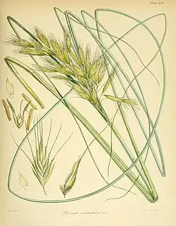 - ^ a b Hooker, J.D. (1845). "Bromus antarcticus". The Botany of the Antarctic Voyage of H.M. Discovery Ships Erebus and Terror in the Years 1839-1843 :under the Command of Captain Sir James Clark Ross. 1: 97. Plate LIV