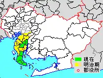 Modern Chita District dates to the cadastral reforms of the early Meiji period, and was initially given to Nukata Prefecture in former Mikawa Province, whereas the holdings of former Owari Domain became Nagoya Prefecture. With the creation of Aichi Prefecture, Chita District again came to be considered part of former Owari Province.
