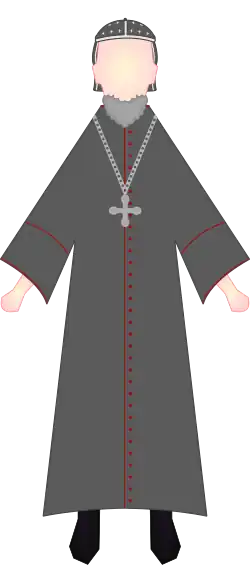In the Syriac Orthodox Church, married priests wear a black skullcap, or phiro, while monastic priests wear the schema, eskimo. For certain sacramental functions, a priest or bishop wears the epitrachelion (stole).