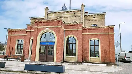 Chojnice railway station is a railway station serving the town of Chojnice, in the Pomeranian Voivodeship, Poland. The station opened in 1873 and is located on the Tczew–Kostrzyn railway, Działdowo–Chojnice railway, Chojnice–Runowo Pomorskie railway, Chojnice–Kościerzyna railway and Oleśnica–Chojnice railway. The train services are operated by Przewozy Regionalne and Arriva RP.