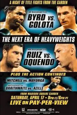 - ^ AP (April 17, 2004). "Byrd wins decision over Golota; Ruiz wins fight with sudden punches". azdailysun.com. NEW YORK: Arizona Daily Sun. Retrieved March 5, 2024.