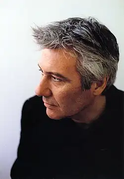 In 1989, Gollon was a finalist in The Spectator Prize.[8] His first solo museum exhibition was at the Ferens Art Gallery in Hull in 1993, which was then Museum Gallery of the Year.[9] The exhibition was televised on BBC Look North.[8] Chris Gollon was a friend of The Skids and enjoyed the company of musicians.[10][7] In 1998, he exhibited with David Bowie, Yoko Ono, and Gavin Turk in 'ROOT', created by Thurston Moore of Sonic Youth, a crossover exhibition of contemporary music and art at Chisenhale Gallery, London.[11] For 'ROOT', Thurston Moore sent Gollon a 52-second tape and challenged him to make either a work of music or art in response. Gollon produced a painting entitled 'House of Sleep' for the 'ROOT' exhibition, which began his nineteen-year fascination with artistic boundary crossing, and how one art form can take another into new areas of thought and feeling and vice versa.[7] 'House of Sleep' sold into a private collection in 1998, but it was loaned for the museum retrospective in 2019 at Huddersfield Art Gallery, in the catalogue for which Thurston Moore wrote "Chris Gollon's work moves beyond painting as singular expression, where music and its essence of spiritual sentience, comes into accord, creating a personal yet welcoming environment, alive and free. I am proud to have had a moment where we colluded via the gestures of mutual acquaintance. His creative and modest genius is eternal."[7]