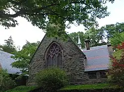 The church was founded in 1866 and its building, made from brick and local stone with a simple pierced-wall belfry; the church building was built in 1866 to designs by architect Richard M. Upjohn.[2] It was added to the National Register of Historic Places in 1983. The building underwent exterior restoration in 1991 and 1992, and it was designated as a New York City landmark.[5][6][7]