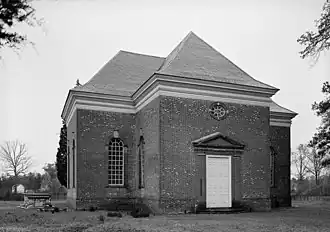 Christ Church is a historic Episcopal church in Lancaster County, Virginia, north of Irvington. Built in 1732-35, it is notable for its unique Georgian design, and is one of the best-preserved colonial churches in the southern United States. The church is the only colonial Virginia church that still has its original high-backed pews and one of two that has maintained its original three-tiered pulpit.