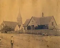 In 1838, fifty years after the foundation of New South Wales, Sydney possessed only two permanent Anglican churches, St Philip's Church Hill (1810; present building 1856) to the north, and St James', King Street (1822), near the centre. The Bishop of Australia, William Grant Broughton, saw the need for another church for the settlement at the city's southern boundary, then becoming a poorer industrialised quarter. This part of Sydney was in the "civil" or "cadastral" Parish of St Lawrence, an administrative division later used only to identify the location of properties for land transactions, but at that time also the ecclesiastical parish. The origins of the name of the parish were unknown, even in 1845, when the incumbent William Horatio Walsh wrote: “The Governor, (which, I know not), or Surveyor-General, who originally laid out the parochial limits, will supply any further information as to the origin of the nomenclature of the parish. The only St Lawrence I know of was ... a Deacon, who was burnt at Rome in the third century.”[2] At the bishop's expense, a temporary church was set up in the Albion Brewery on the corner of Elizabeth Street and Albion Street. This temporary "Saint Lawrence Church" operated from 1838 to 1845.[3][4]