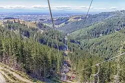 The park is set on 358 hectares (880 acres) and is located in the suburb of Cashmere, surrounded by Dyers Pass Road, the Summit Road, and Worsleys Road.[2] The park features a 1.8 kilometres (1.1 mi) chairlift that gains 435 metres (1,427 ft) height, and has a capacity of 1,200 riders and their bikes per hour. There are four sections of zip-line in the park, with two of them 1 kilometre (0.62 mi) in length.[2] When the park opened, the chairlift gave access to 50 kilometres (31 mi) of downhill tracks of different levels of difficulty, and the restaurant can seat 180 people.[1] The developer claims that the park is the largest facility of its kind in the Southern Hemisphere.[1]