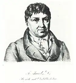 Christian Friedrich Wilhelm Jacobs (October 6, 1764 – March 30, 1847) a German classical scholar, was born at Gotha. After studying philology and theology at Jena and Göttingen, in 1785, Friedrich Jacobs (as he is known), became a teacher in the gymnasium of his native town, and in 1802 was appointed to an office in the public library. In 1807 he became classical tutor in the lyceum of Munich, but, disgusted at the attacks made upon him by the old Bavarian Catholic party, who resented the introduction of north German teachers, he returned to Gotha in 1810 to take charge of the library and the numismatic cabinet. He remained in Gotha till his death on 30 March 1847.[1]