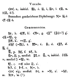 - ^ Rawlinson received Lassen's copy in 1839, three years after publication "It was at this period that I received through the Vice-President of the Royal Asiatic Society, a letter from Professor Lassen, containing a précis of his last improved system of interpretation, and the Bonn alphabet I recognized at once to be infinitely superior to any other that had previously fallen under my observation" Rawlinson, Henry Creswicke (1846). The Persian Cuneiform Inscription at Behistun, Decyphered and Translated; with a Memoir on Persian Cuneiform Inscriptions in General, and on that of Behistun in Particular: By Major Henry Creswicke Rawlinson. Parker. p. 10.