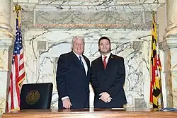 House Speaker Michael E. Busch (left) swears Miele (right) into the Maryland House of Delegates, 2015