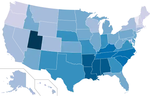 - ^ "Mississippians Go to Church the Most; Vermonters, Least". Gallup. February 17, 2010. Retrieved January 13, 2014.