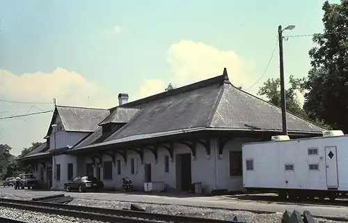 Much of the railroad was destroyed by Union forces during the Civil War. In 1868–69, a larger one-story station was built. That station was itself too small after several decades; a new station was built in 1906, and the older station became the town's freight house.[3]