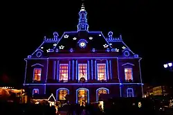 Town Hall of Levallois-Perret lit up with Christmas lights