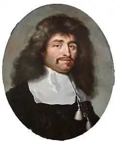 During the brief interval of peace between King Charles X's first and second attack upon Denmark, Gabel was employed in several secret missions to Sweden;[5] and he took part in the conspiracies that resulted in the autocratic revolution of 1660. While not the originator of the revolution, he was certainly the chief intermediary between Frederick III and the Conjoined Estates in the mysterious conspiracy which established absolutism in Denmark-Norway.[7] His activities won the king's lifelong gratitude. He was enriched, ennobled, and in 1664 made governor of Copenhagen.[8] From 1660 to 1670 he was regarded as the most influential figure at court,[9] and very largely employed in financial and diplomatic affairs.[6] During the early and mid 1660s there was an influential circle around Hannibal Sehested, Frederik Ahlefeldt, Peter Bülche, Hans Svane, Jacob Petersen and Theodor Lente, who became increasingly opposed to Gabel.[10] During this period he carried out a pro-French foreign policy,[9] while his domestic policy was affected by laziness[2] and corruption.[11]
