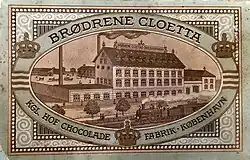 On 3 November 1862, Christoph Cloëtta and his two brothers opened a chocolate factory under the name Brødrene Cloëtta (Cloëtta Brothers) in which he soon came to play a dominant role. The factory was initially based in a building at Sortedam Mill outside the city but was after a few years moved to a building at Niels Hemmingsens Gade 32. This led to a period with rapid growth.[2] Brødrene Cloëtta was in 1983 granted a royal warrant.