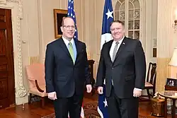 Christopher Ashley Ford (born 1967) is an American lawyer and government official who served from January 2018 until January 2021 as Assistant Secretary of State for International Security and Nonproliferation. He was nominated to that position by President Donald Trump,[1] and confirmed unanimously by the U.S. Senate on December 21, 2017.[2] After October 21, 2019, Ford also, by delegation from Secretary of State Michael Pompeo, performed the duties of the Under Secretary of State for Arms Control and International Security until his resignation from the Department of State on January 8, 2021.