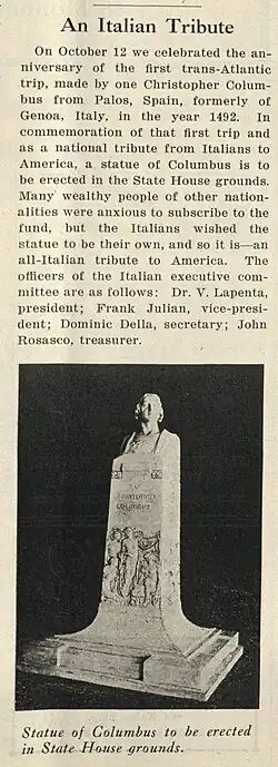 5. ^ a b Unknown author (17 June 1919). “Indianapolis Italians to Offer City Monument to Christopher Columbus”. Indianapolis News (Indianapolis).