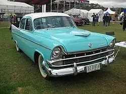 A revised Royal, the AP2 was introduced in late 1958.[5] This series featured a new grille and unusual rear styling with additional "saddle fins" grafted on to the existing tailfins.[5] The AP2 was available as a Royal four-door sedan, a Plainsman four-door station wagon, and the new Wayfarer two-door coupé utility.[2] The unrelated Dodge Wayfarer lent its name to this version. The Plainsman station wagon was dropped from the range during the AP2 series.[2] The choice of six-cylinder and V8 engines continued, with the V8 identified by a V-shaped emblem in the grille and a small V8 badge on the rear quarter.