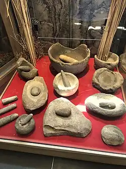 Interior parts of the 5,400 sq. ft. museum contains locally retrieved artifacts such as tools used for grinding acorns, murals, instruments, and games. It also features a reconstructed tomol (Chumash canoe), mockups of cougars and other wildlife, as well as a diorama depicting life before the Spanish arrived. Items are routinely on loan from the Santa Barbara Museum of Natural History, including woven bowls, grinding tools, and other artifacts.[15][16]