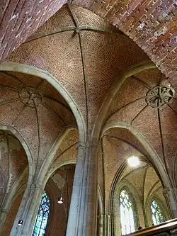 In 1220 it was mentioned as Church of St Mary, for the first time.[4] In 1219, Gerhard II had become archbishop. It is supposed that he changed the dedication and almost at the same time began to rebuild the church as a hall church. The only remainders of the buildings before are the southern tower, the ossuary cellar and parts of the inner side of the northern wall above the ossuary. Therefore, the footplans of the preceding churches are unknown. The ossuary had been built with two accesses (as typical for crypts), but its positions seems not to be typical for a crypt.