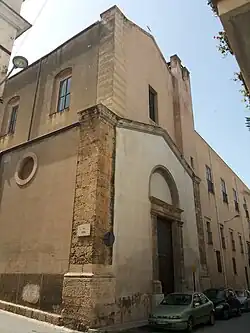 Inside the sacristy there was an alabaster statue of the Virgin and Child, called Madonna della Provvidenza, dating back to the 15th century and attributed to Pietro de Bonitate (today kept in the Sacred Art Museum in the Mother Church), a painting representing the miracle of saint Vincenzo Ferreri made by Giuseppe Renda in 1793,[1] and another representing saint Angela Merici, made in 1905 by Francesco Alesi.