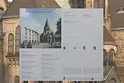 The Church of Grace was built by the congregation of St. Pauli's Church to serve the northern portion of the St. Pauli's district.[1] Fernando Lorenzen (1859–1917) designed the Church of Grace that was completed in 1907 on Karolinenstrasse.[2][3] By this time, Lorenzen was already the architect of several churches, including the Kreuzkirche in Hamburg-Ottensen.[2] The Church of Grace was built in the Neo-Romanesque style.[4] Lorenzen drew inspiration from Eastern European church architecture, especially that of Georgia.[1] The floor plan is in the shape of a Greek cross (a cross with four equal branches).[4] The name of the church was an intentional reference to the grace of God, owing to the location of the church between a prison and a courthouse.[1]