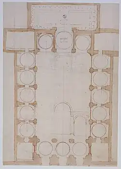 Lorenzo de' Medici commissioned Giuliano da Sangallo to design a monastery of Austin Friars outside the gate of San Gallo.[1] One Architectural drawings for the building survived and it shows Architrave and Pilasters.[2] This commission was meant to be used as an example of Medici family public patronage in Florence.[3]