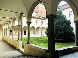 In 1782, the monastery was suppressed by Joseph II and transformed into the General Seminary for the Austrian Lombardy.[7] Giuseppe Piermarini, charged with adapting the complex to the new destination, heavily modified the church and demolished the entire right aisle, while saving the 15th-century cloister. A few years later, in 1791, the seminary was closed, and the complex became a barracks; it remained so until the 1980s, when it was sold to the University of Pavia. After restorations, the university now uses the church as the seat of some university faculties and the Humanistic Studies library.[8]