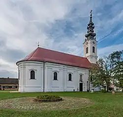 The Church of St. John the Baptist in Bačka Palanka, dedicated to the Nativity of St. John the Baptist, was constructed between 1783 and 1787. Built in the late baroque style by architects Josif Cigler and Ernest Harle, the church features a single nave with a semi-circular apse, a rectangular choir wider than usual for the region, and a tall baroque bell tower.[2] The church has entrances on the west, north, and south facades.