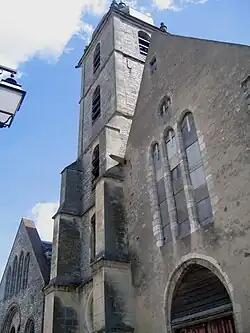 The large nave dates from the 14th century and the North aisle from the beginning of the Renaissance (end of 15th century). The woodwork and the altarpiece go back to 16th century, so does the framing of the vaulted nave. Some pieces of furniture are registered into Monuments historiques, such as an Entombment of Christ, the 18th-century grilles, one statue of St. Roman (bishop of Auxerre in 6th century) and another of St. Bernard, the Renaissance stained glass windows (some created by Jean Cousin the Elder[2]), one statue of St. Anne in stone, a bas-relief of St. Hubertus. The stalls are from 16th century. Two paintings are remarkable, one with St. Peter freed by angels and another Madonna with a dove. Other paintings show the Evangelists.